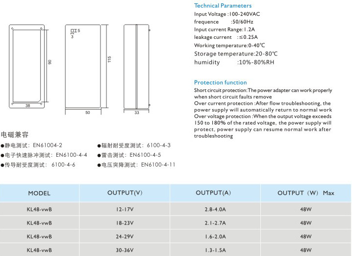 短路保護:電源適配器在短路解除時能正常工作恢復