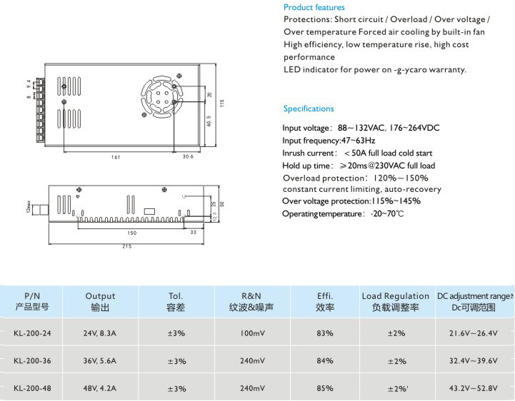 高效率、低溫升、高性價比 適用于LED顯示、工業(yè)控制 輸入電壓:88-132VAC,176-264VAC 輸入頻率:47~63Hz 沖擊電流:<50A滿載冷態(tài) 保持時間:≥20ms@230VAC滿載 過載保護(hù):120%-150%自動恢復(fù)限;限流保護(hù),自動恢復(fù) 過壓保護(hù):115%~145% 運行溫度:-20-70℃" />